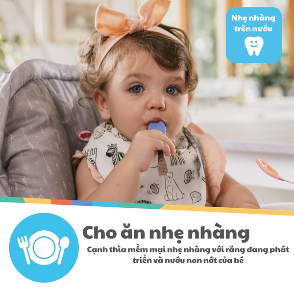 | Đổi màu khi thức ăn quá nóng – đầu muỗng sẽ đổi màu để cảnh báo nhiệt độ, giúp bố mẹ kiểm soát tốt hơn khi cho bé ăn Thiết kế tay cầm dài 15cm, dễ cầm nắm Đầu muỗng mềm mại – nhẹ nhàng với nướu và răng non của bé, không gây tổn thương khi sử dụng Phù hợp cho bé trong giai đoạn tập ăn dặm từ 4 tháng tuổi trở lên