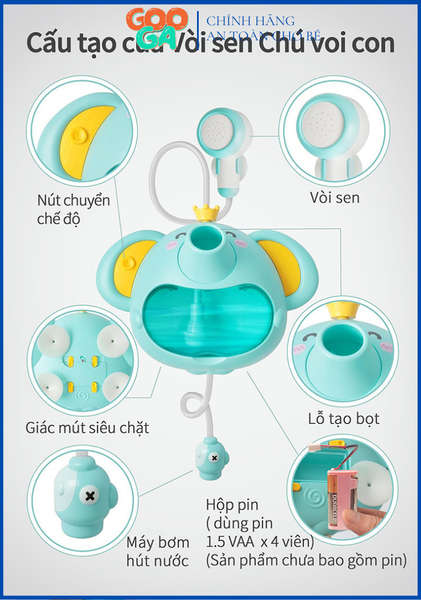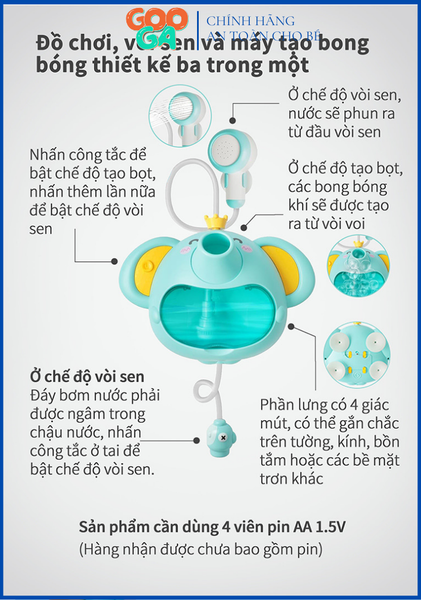 GOOGOOGAGA Vòi sen 3 trong 1 bằng nhựa hình chú voi